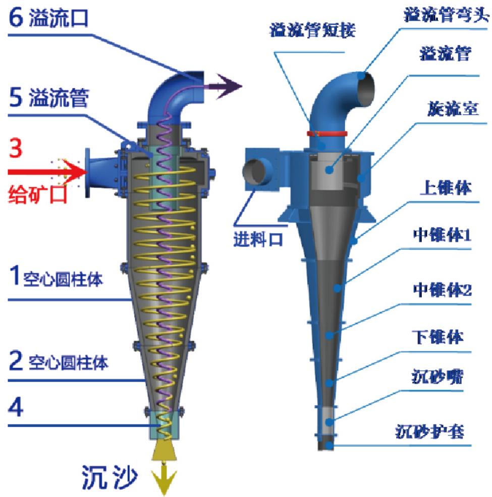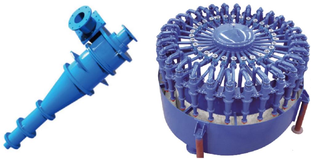 Cyclone is a common separation and classification equipment, the principle of centrifugal sedimentation is commonly used. When the two-phase mixture to be separated enters the cyclone tangentially from the periphery of the cyclone at a certain pressure, a strong three-dimensional elliptical strong rotational shear turbulent motion is generated. Due to the particle size difference between coarse particles and fine particles, they are subject to different sizes of centrifugal force, centripetal buoyancy, fluid drag force, etc. Under the action of centrifugal sedimentation, most of the coarse particles are discharged through the bottom flow of the cyclone, while most of the fine particles are discharged by the overflow pipe, so as to achieve the purpose of separation and classification